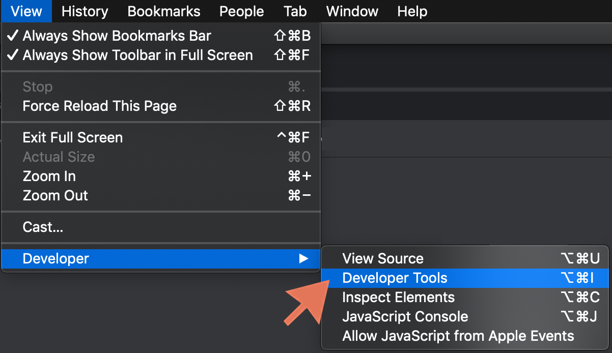 Step 1: Open Developer Tools (This starts recording the session.)