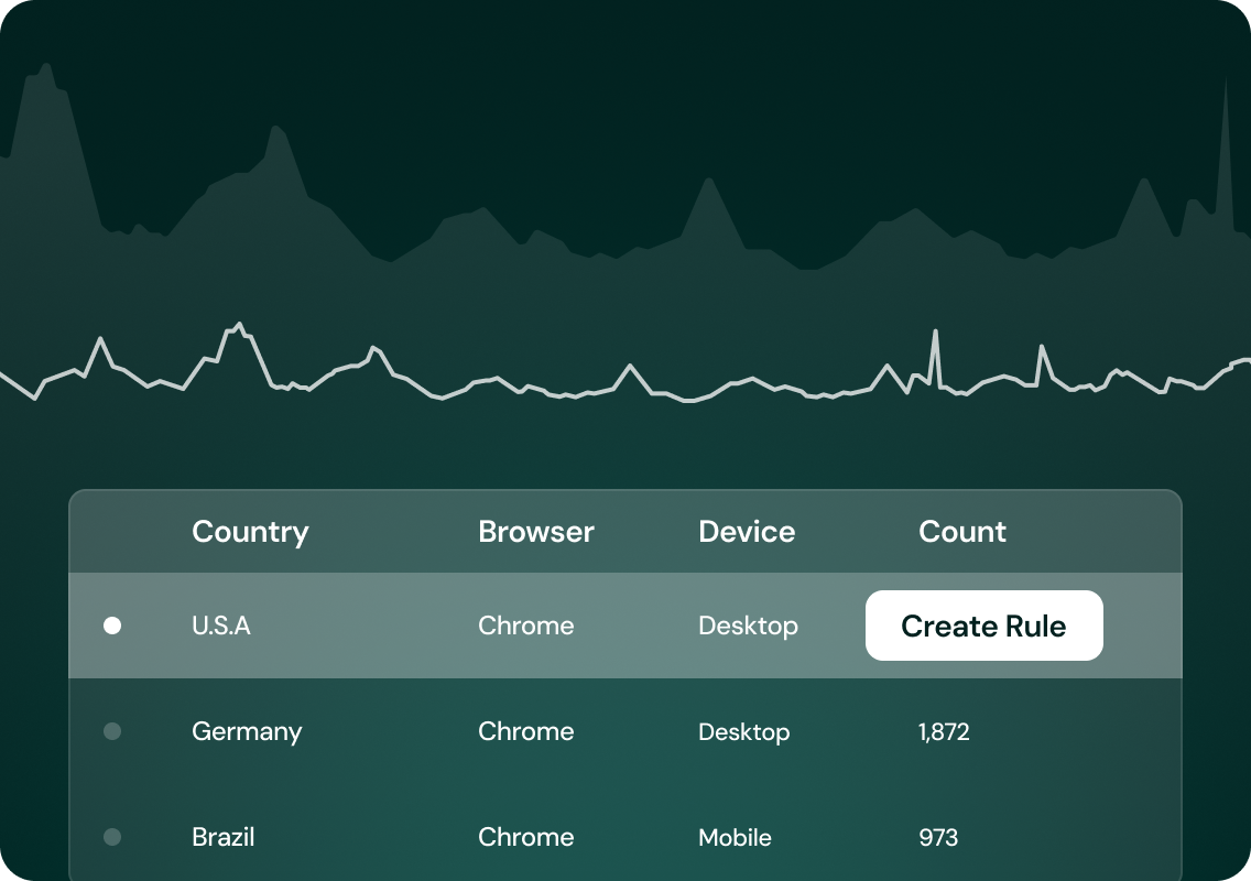 Create and instantly backtest adaptive rules. Enforce responses in real time, from intelligent rate limiting to MFA challenges to blocking.